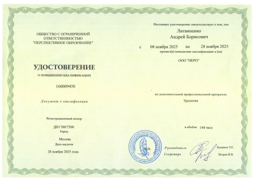 Литвиненко Андрей Борисович врач уролог.